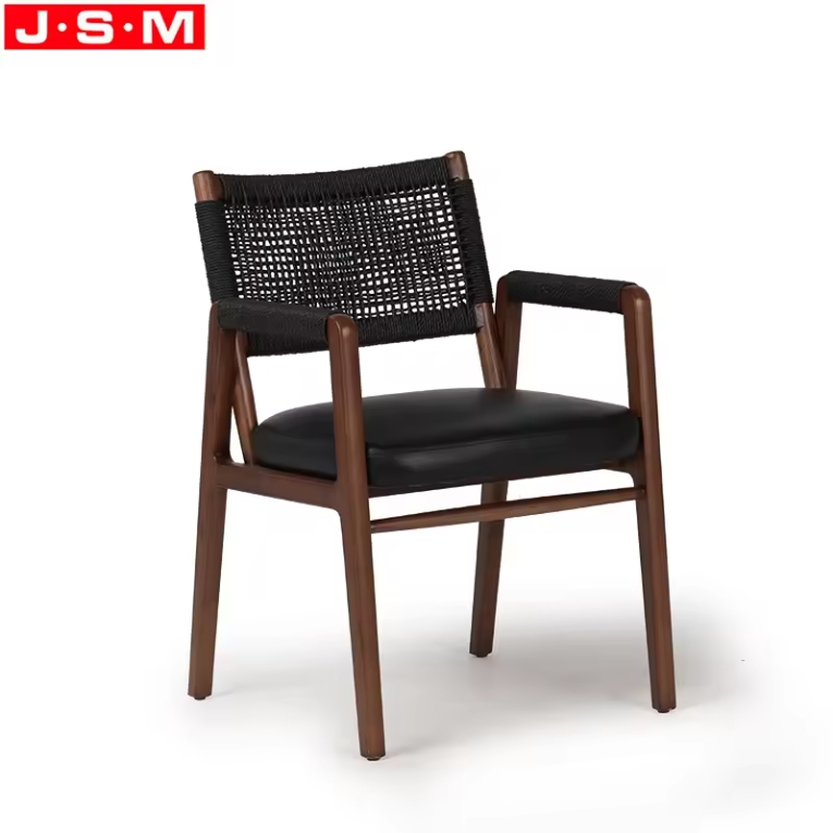 Hot Selling Luxury Quality Dinning Leather Cotton Rope Woven Back Dining Chair
