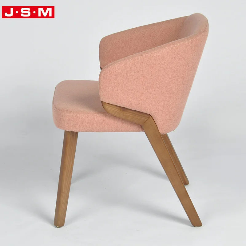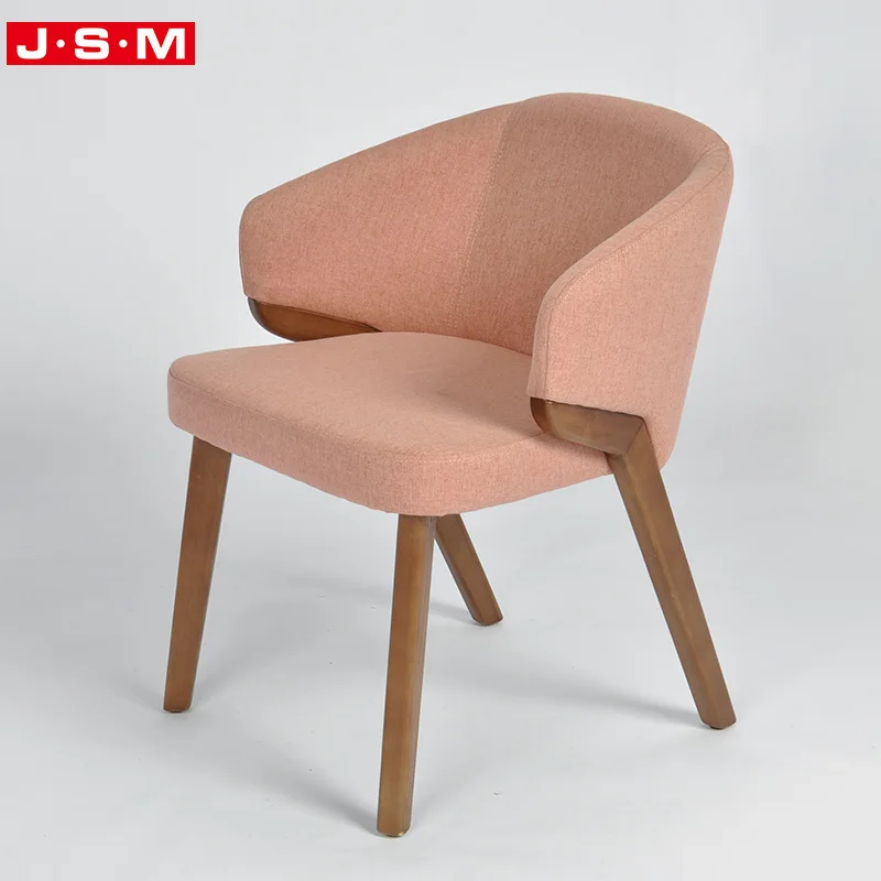 Home / Products / Modern Restaurant Outdoor Dining Room Wooden Pink Fabric High Back Dining Chairs